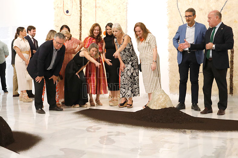 En la visita de este martes se inauguraron las dos muestras de las salas temporales: ‘El megalitismo en tierras de Huelva’, en la Gómez Moreno y ‘Resonancias de la tierra sagrada’, organizada por el Centro Andaluz de Arte Contemporáneo (CAAC) que muestra obras de seis creadores actuales, que, desde diferentes perspectivas creativas, reflexionan sobre el paisaje y sus vínculos ancestrales y simbólicos.