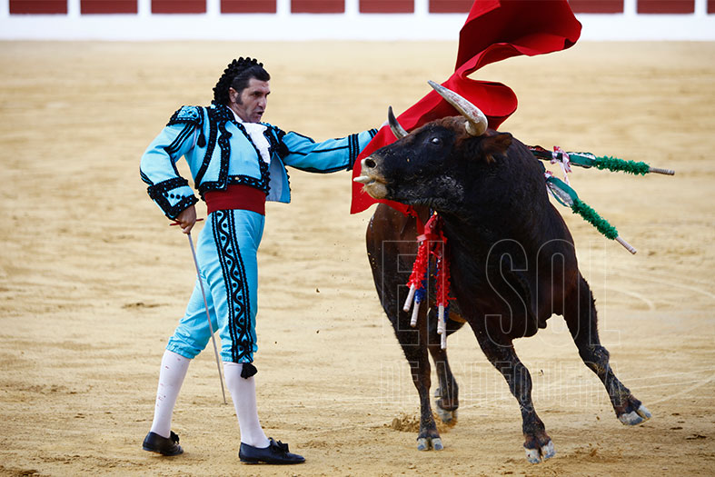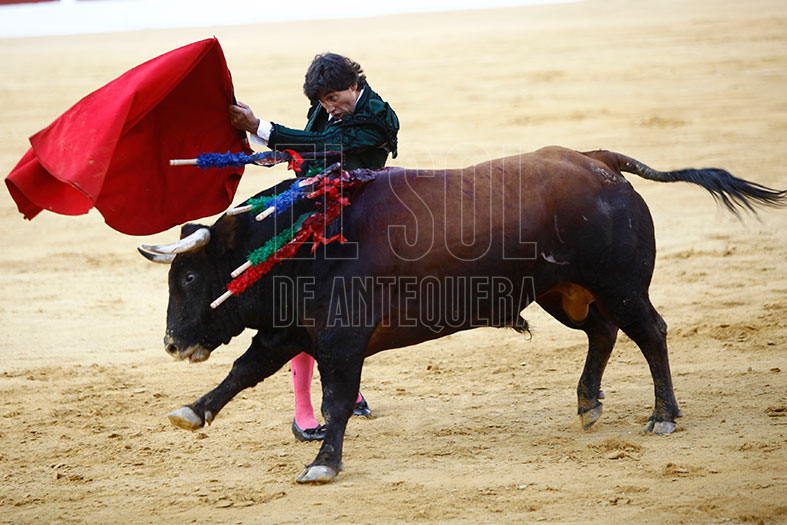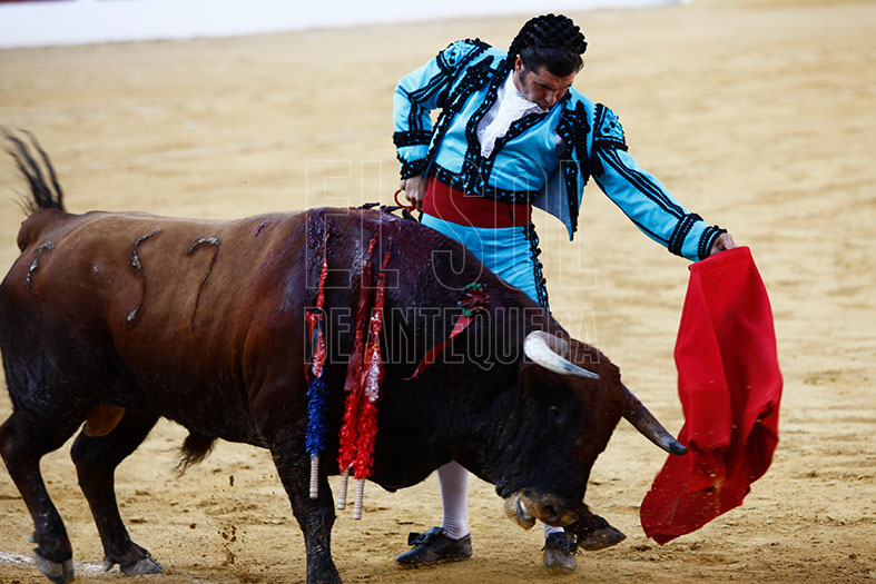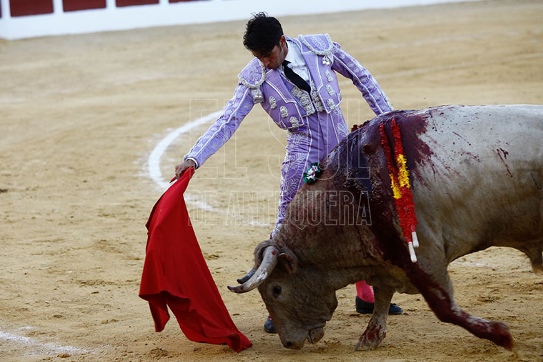 Fue un buen ejemplar con el que trabajó con la muleta por abajo, con varios doblones que finalizaron con ambas rodillas en la arena en la cara del toro. Varios pases que recordaron a tiempos no muy lejanos, esos que lleva en la sangre de casta torera, la de los Rivera y los Ordóñez. Puso mucho empeño en sacar todo del animal que respondió bien con varios derechazos, naturales y trincheras con los tendidos entregados. Aunque el rival se fue aflojando, sacó valentía en la cara del toro, tirando los trastos al suelo en la búsqueda de los aplausos ante una buena faena, de más ganas y rabia que purismo. Mató bien y eso le valió con el público a su favor, los dos apéndices con los que se consagró en Antequera.