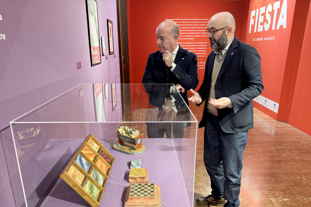 El autor antequerano Alejandro Naranjo expone hasta el 6 de marzo ‘Fiesta’ en la Sala del Ayuntamiento;incluyendo piezas como los carteles de la Real Feria de Agosto de 2025 o la Navidad de 2021.