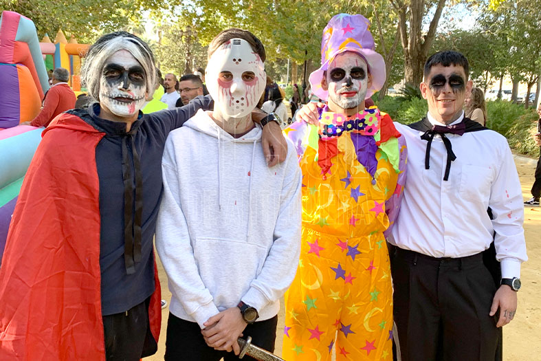 El tema de la fiesta era Halloween, pero aunque iban disfrazados de personajes y momentos terroríficos, lo cierto, es que los más pequeños se lo pasaron muy bien en esta cita donde tuvieron chuches, música en directo, castillos hinchables, talleres infantiles y todo amenizado por los voluntarios de Proyecto Humano que celebraron además, su aniversario.