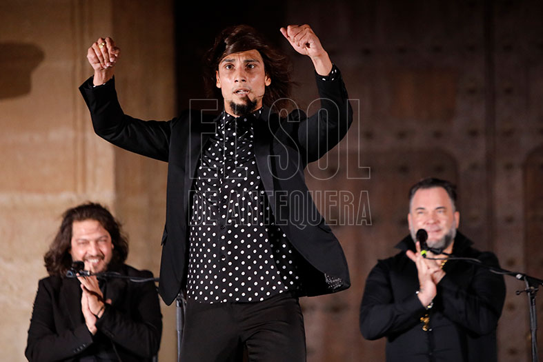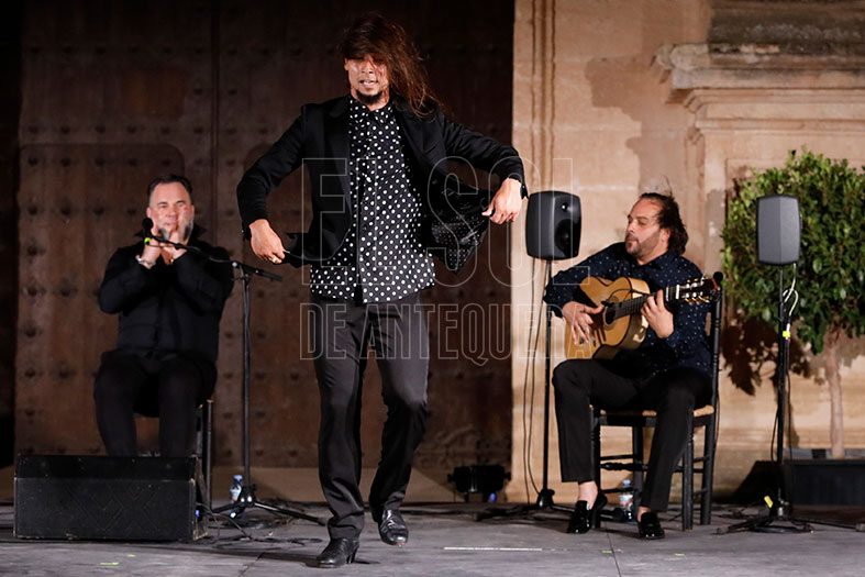 Se rompió el orden habitual y comenzó a lo grande con el baile. «El Yiyo» hizo de fuego, fusionando su ímpetu joven sobre el tablao, pasando de los movimientos apasionados con sus taconeos que levantaron los aplausos y vítores del público, que se puso en pie las primeras filas una y otra vez. Combinó su zapateado, acompañado de música y sin ningún añadido, solo con los olés del público.