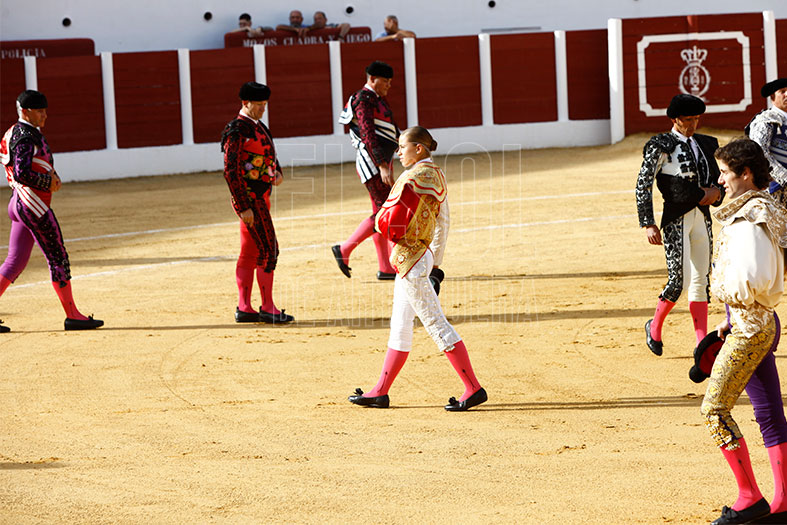 Comenzó la tarde para Lea Vicens con un toro de Bohórquez parado al que intentó lidiar de inicio con un rejón de castigo bien colocado. Sacó cuadra para intentar conseguir algo con un toro que caló desde el principio, cuatro banderillas largas y dos cortas que no levantaron mucho al animal al que comprendió no iba a obtener mucho más. Así pinchó con el rejón de muerte, poniendo el segundo algo caído, pero matando a su adversario.