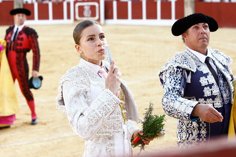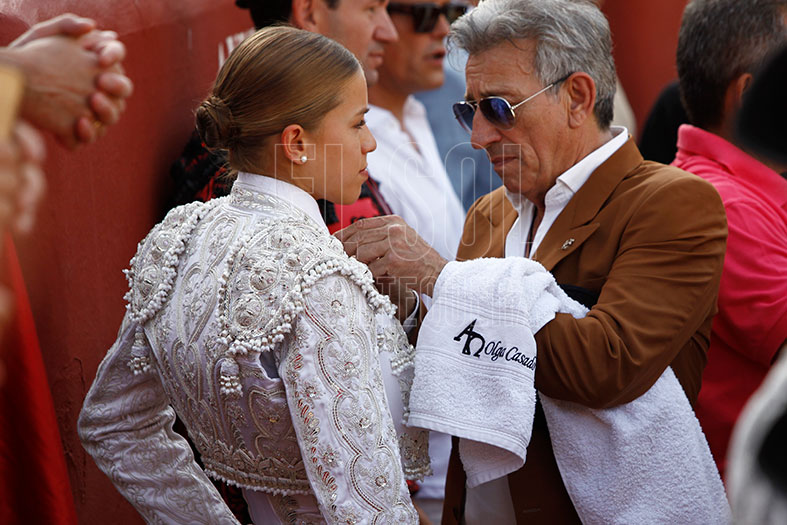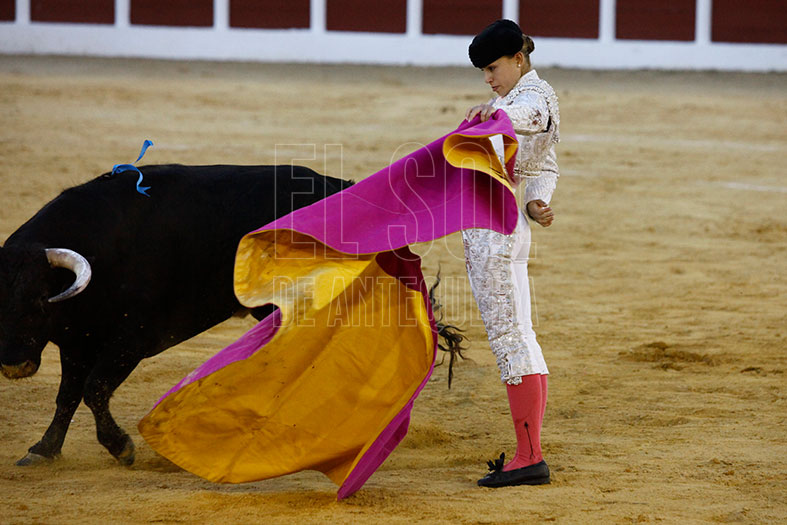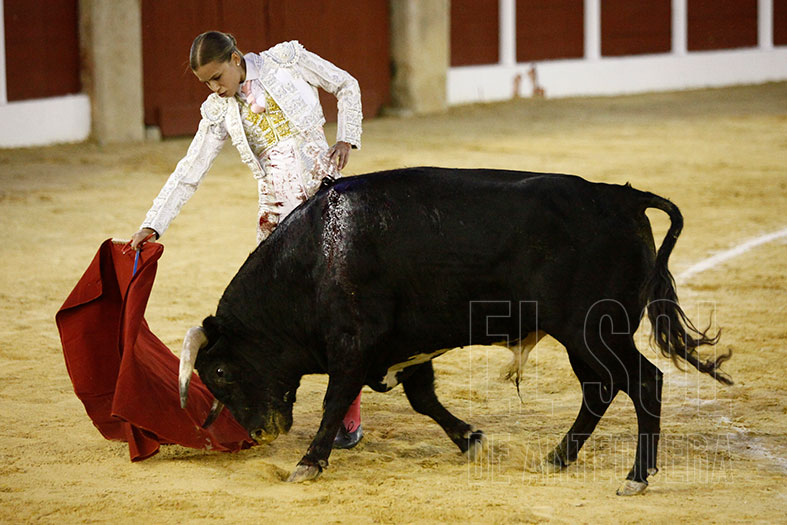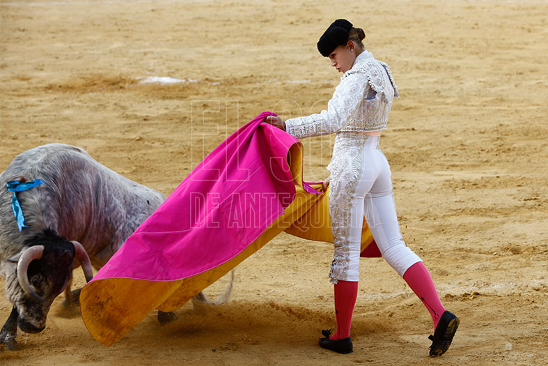 Olga Casado debutó en Antequera cortando dos orejas al primero de su lote. Fue un manso y noble novillo que desde inicio obedeció a su maestra que supo sacarle todo en el capote, en el quite y luego, con la muleta.