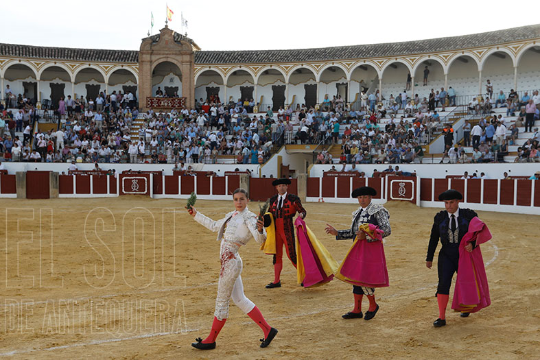 Se gustó Casado en el albero antequerano y mostró todo un recital de pases, para ganarse al público y a “Algecireño” un novillo que obedeció aunque al final de la faena fue aflojando. Estuvo determinante con la espada y con fuerte ovación por el público se le concedieron los dos apéndices.
