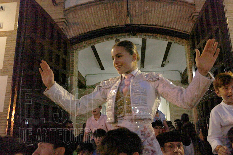 La Puerta Grande de Antequera se abre para el debut de Olga Casado, joven novillera que pide paso con maestría, talento, sin miedo y ganas de sentirse torera y regresar a Antequera. Lea Vicens tuvo mala tarde a la hora de matar y Santana Claros, cortó una oreja con un segundo en el que pidió silla para mostrar sus ganas de convencer a los tendidos y de gustarse.