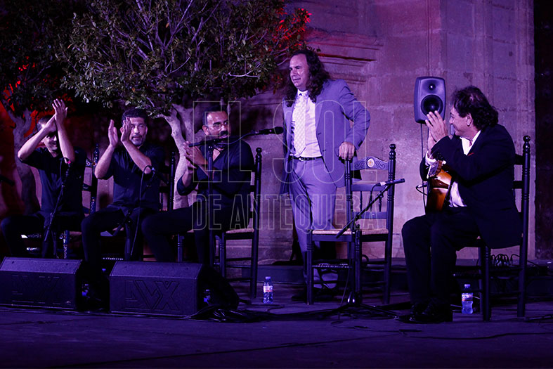 Soñaba con una noche en la que fuera como un torero que saliera a la plaza, solo, mano a mano, encerrándose ante seis toros ante su público, su tierra, su Antequera. Y lo hizo este viernes 4 de agosto ante la imponente fachada de Santa María, como preludio de la noche flamenca. Por cierto, pasear por el casco histórico y escuchar su voz por las cuestas, Coso Viejo y hasta calle Calzada, mostraba el quejío de la noche.