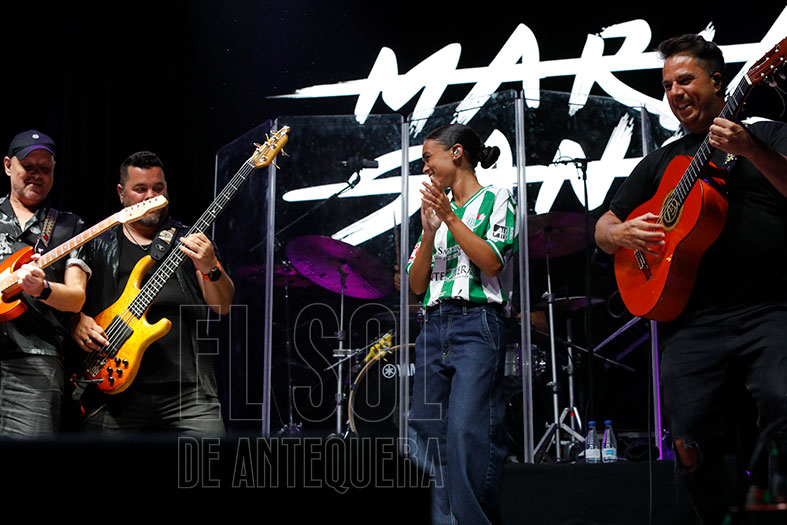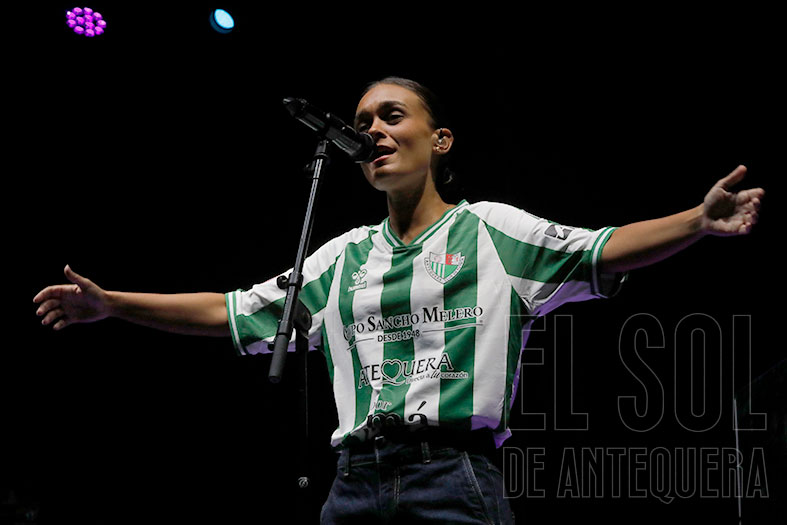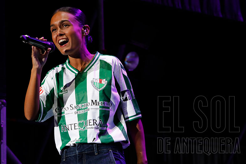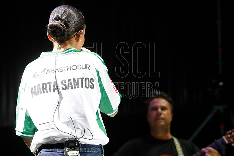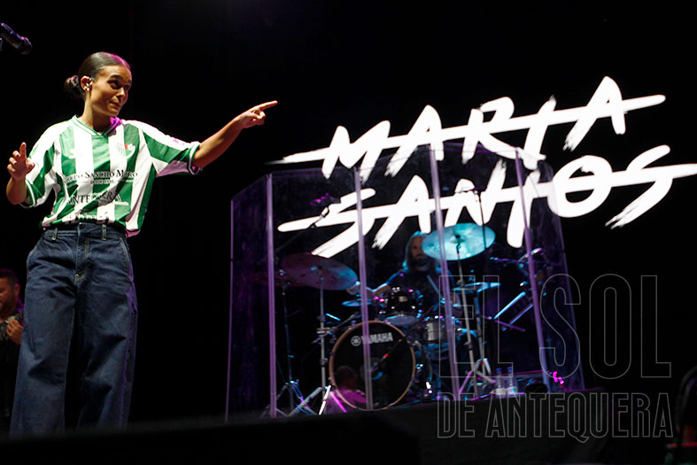 La noche de la fiesta local en la Real Feria de Agosto de Antequera de 2025 tuvo en la actuación de la sevillana Marta Santos un guiño a los jóvenes, el flamenco y al Antequera, ya que se subió al escenario con la camiseta del equipo de Primera RFEF.