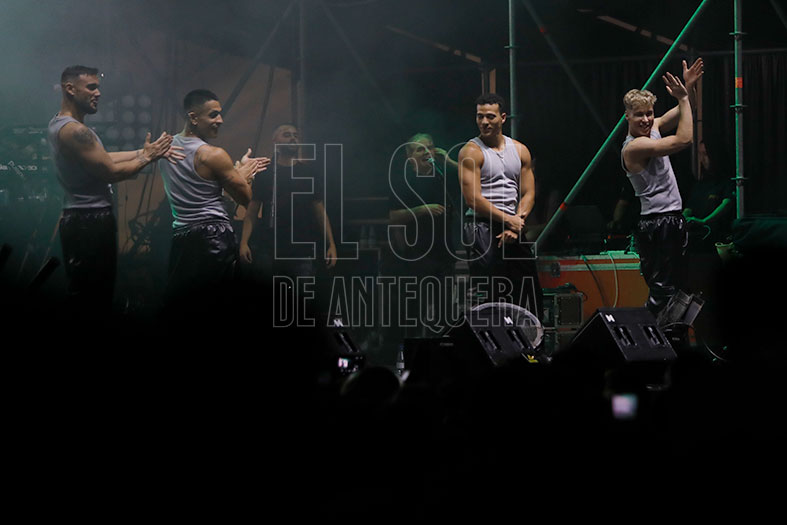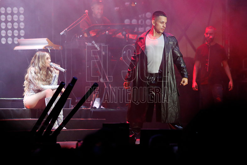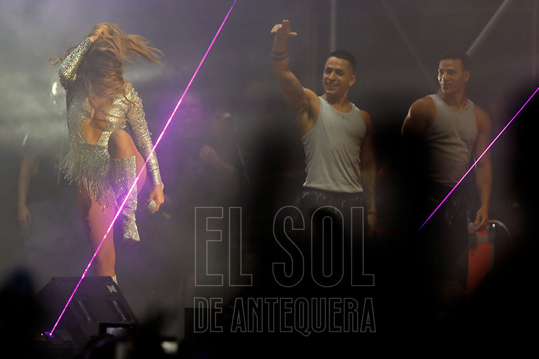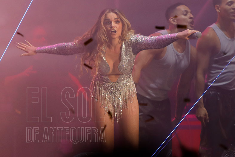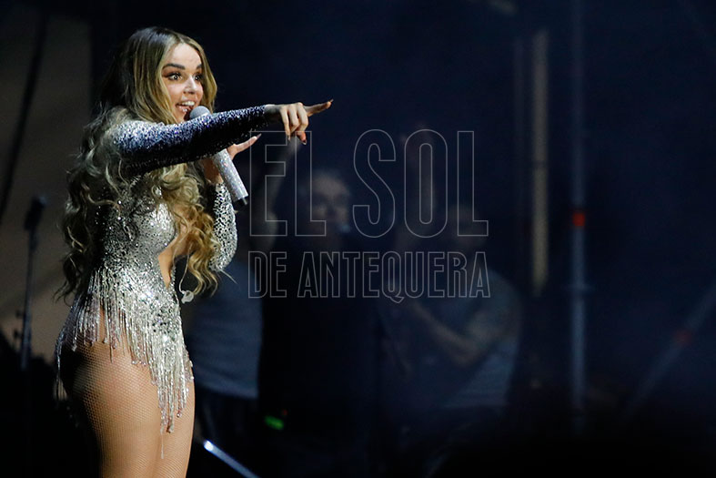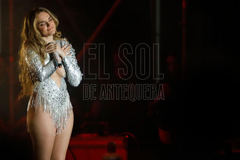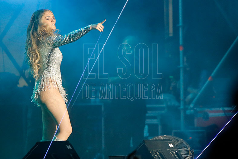 El auditorio deliraba cada vez que «hacía el helicóptero» con su pelo, pidiendo que le acompañaran y «el que no tenga pelo, que se ponga la mano en la frente». Se cambió del rosa inicial a los blanco y plata final de sus trajes. Con «De pata negra» recordó a esa chiquilla que recorría escenarios hasta que encontró su oportunidad en Eurovisión. Con «El apagón» hizo su particular visión del día a día de nuestra sociedad, en un tema que estrenaba en Antequera durante un concierto.