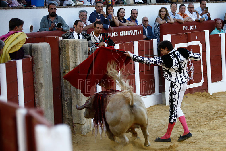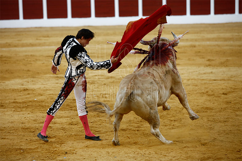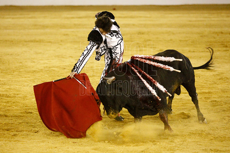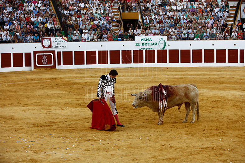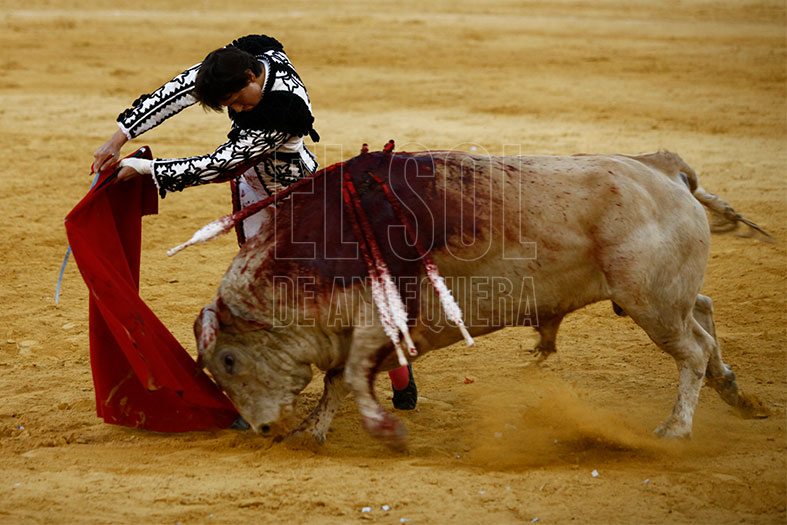 Juan Ortega debutó en la Plaza de Antequera y tuvo un bravo adversario al que tocó frenar en las embestidas. De hecho, con el capote por verónica se coló dándole un susto. Tras el puyazo largo, el toro siguió mostrando buenas maneras lo que permitió al sevillano lucirse en varias tandas por naturales, tanto por la derecha e izquierda, pies juntos y firmes. Su grata faena se quedó sin trofeos al pinchar en cuatro ocasiones a la hora de matar.