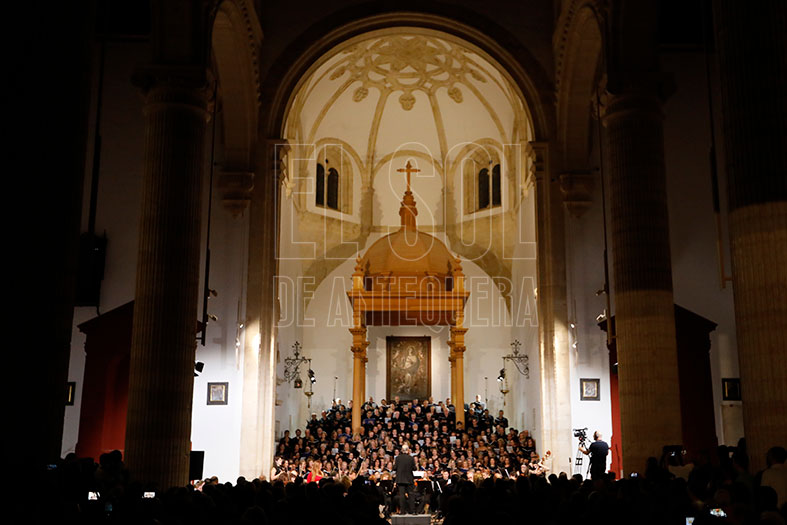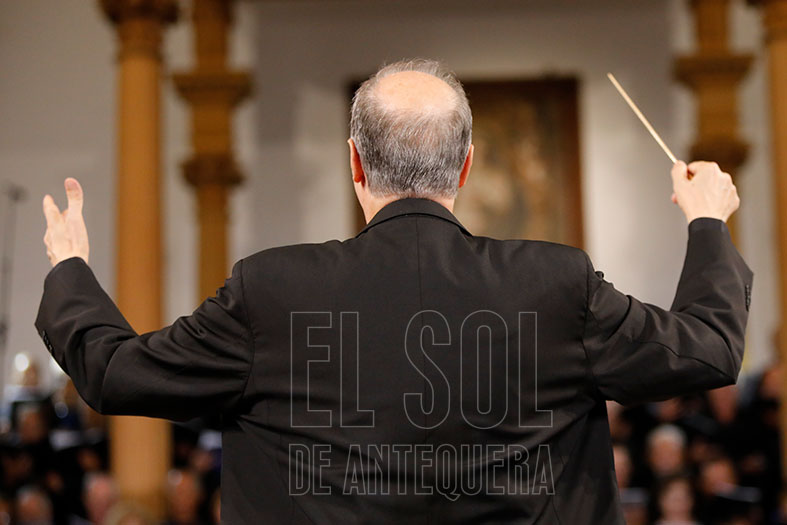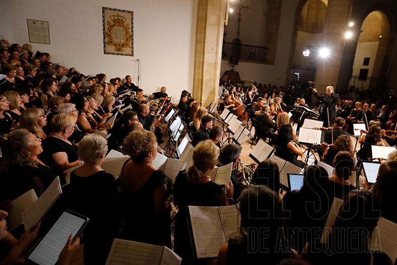 Antequera vivió en la noche del viernes 29 de agosto un viaje a la época del esplendor de Santa María y de la ciudad, gracias al concierto que el compositor y director del coro de la Diócesis de Roma, Marco Frisina, ofreció junto a doscientas voces de once coros y la Orquesta Sinfónica Provincial.