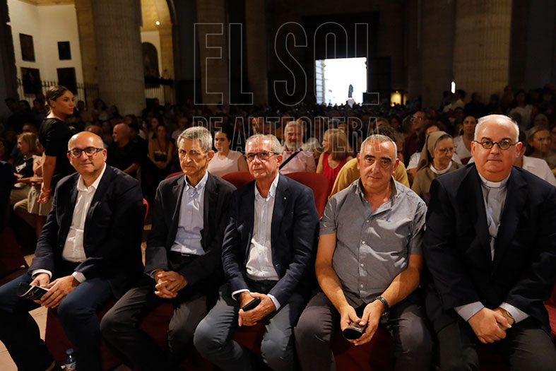 Así compartieron: ‘San Pedro y San Pablo’, ‘Tu es Petrus’, ‘Chi ci separen’, ‘La via dei martiri’ (¡sin palabras en este tema!), ‘Sant’Agostino’, ‘Chiara e Francesco’, ‘Aunque es de noche’ y momento especial para el ‘Nada te turbe’ que nos legó Santa Teresa con la guitarra de Javier García Moreno. Quien no lo había hecho.. ya no se pudo aguantar sentir el misticismo que penetraba con sus voces y música, contando con los solistas Luis Pacetti como tenor y Mari Luz Román que hizo de soprano. Y terminó con ‘Pref e risco il paradiso’.