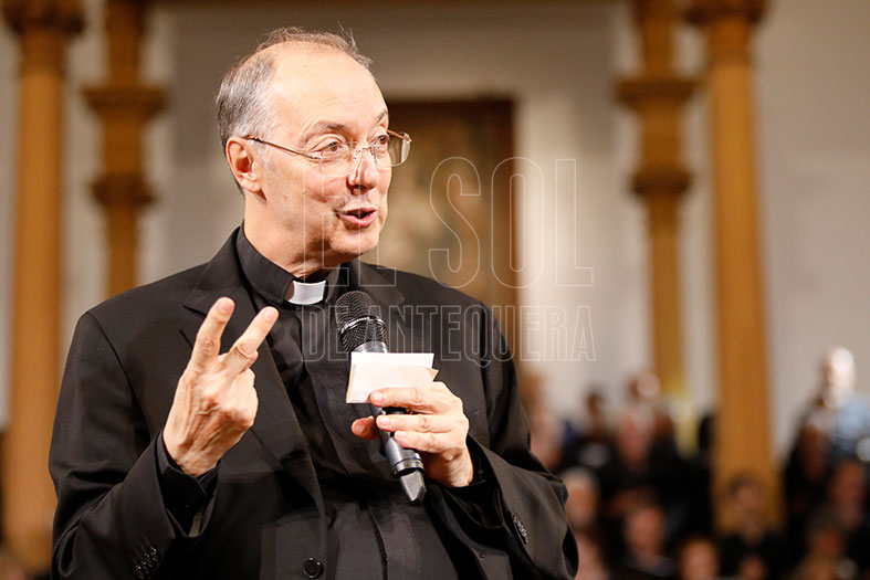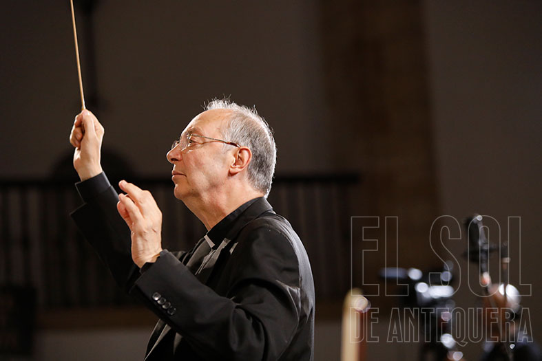 Y empezó el concierto. El director Marco Frisina fue introduciendo cada parte del concierto, alabando la singularidad y excepcionalidad de Antequera, ciudad de la que se ha enamorado, destacando la espiritualidad de sus templos, su calles y el sello de las distintas órdenes y congregaciones.