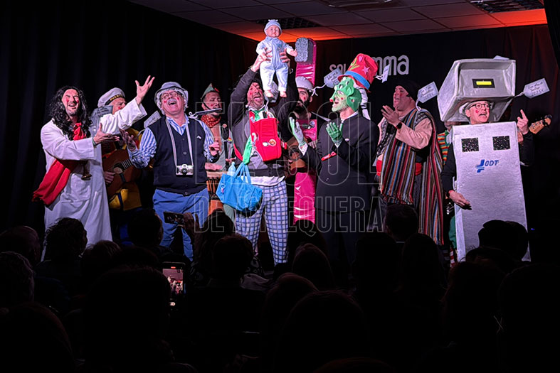 “Estos no son cuatro trapos, son de historia un pedacito, más de veinte carnavales, llevo yo tocando el pito”, añadían en la parodia previa a rescatar algunas de sus letras más emblemáticas, cuidadosamente seleccionados del archivo de la agrupación y que quedaba demostrado que han envejecido muy bien en estas dos últimas décadas para “que revienten las esquinas y que explote el pasacalles al compás del tres por cuatro”, como se despedían rememorando la ‘Obra de Teatro’ del pasado año.