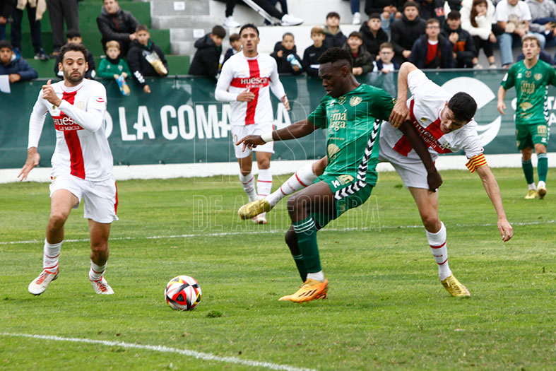 Destiny en el 19 termina un asedio de ocasiones desaprovechadas. Y se sabe que así es el fútbol. Tanto se perdonó que en la primera ocasión del Huesca, en el 35, Lombardo cruza el balón ajustándolo al palo contrario de Kameni y consiguiendo el 0 a 1.