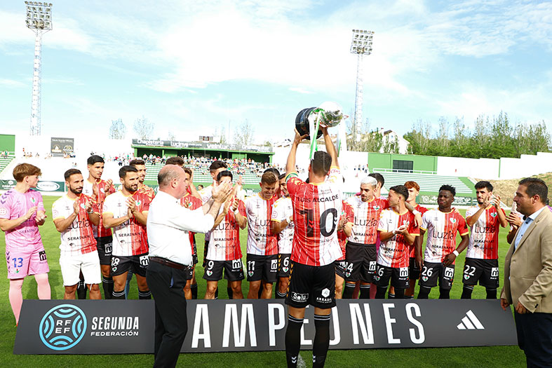 Antes del empate en casa ante el Betis Deportivo, el Antequera recibió la copa de campeón de liga del grupo cuarto de Segunda RFEF, con una foto para la historia en la que el capitán, Luis Alcalde alzó el trofeo.
