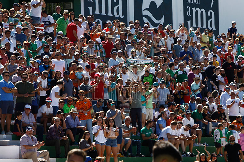 Minuto 33, pausa para hidratación que decide el partido. Cuando se pensaba en el descanso, en el 44, Luismi Redondo dispara al palo, pero Chema está atento y bate al portero. 1 a 0 y la grada que se cae de alegría. Pero no estaba acabado, en el 2 de añadido, Luismi se la pone a Chema Núñez que marca su segundo. Dos goles que apuntillan a los visitantes.