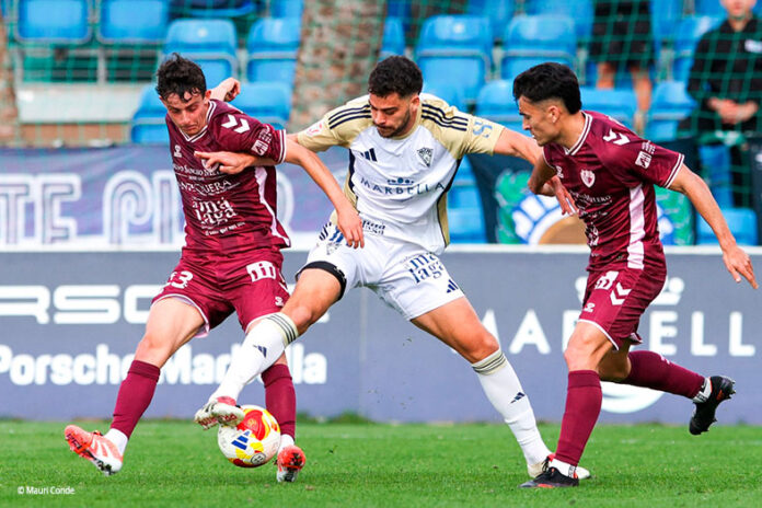 El colista, el Marbella, se va a por el partido porque no tenía más que perder. Fue Alcalde el que lo intentó, pero se quedó en sustos. Adrià Gené entró por Moi Parra para afianzar la ventaja, pero fue el capitán, cómo no, el que volvió a tener otra oportunidad, pero Manu García evita con un paradón el que pudo ser el segundo tanto visitante.