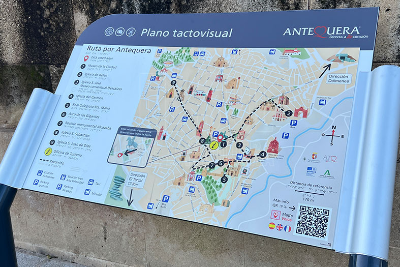 La semana de FITUR se estrena en la calle con nuevos planos tactovisuales para acercar la información turística a personas con dificultades visuales. Así, el Coso Viejo es uno de los lugares donde se pueden ver estos planos.