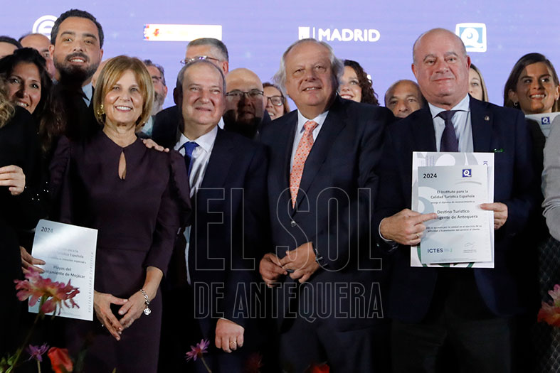 Antequera suma un nuevo distintivo turístico nacional, esta vez por la “apuesta por la calidad en el ejercicio de su actividad y la prestación del servicio al cliente”. Así lo concedió el Instituto para la Calidad Turística Española y Sostenibilidad (ICTES) al Ayuntamiento en la noche del jueves 23 en el Palacio de la Cibeles de Madrid, en acto presidido por el ministro de Turismo, Jordi Hereu Boher.