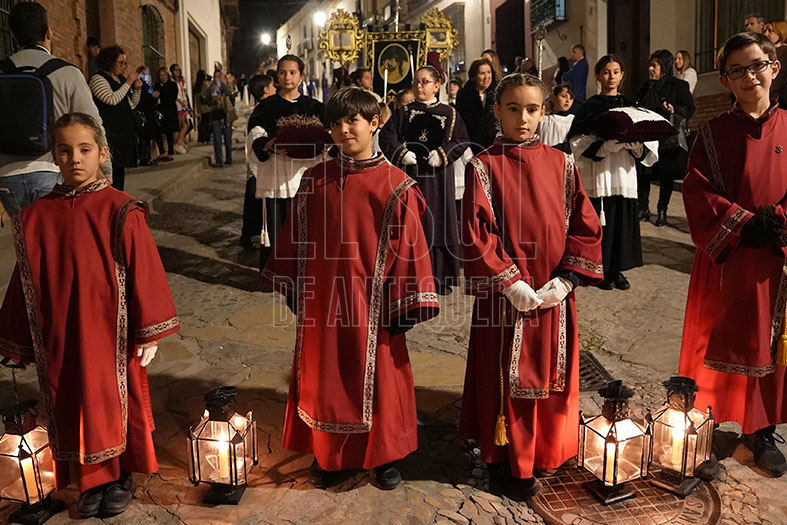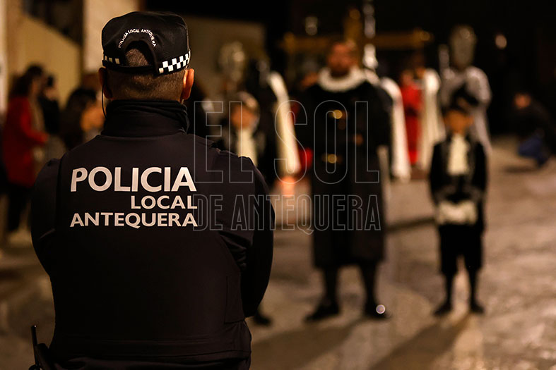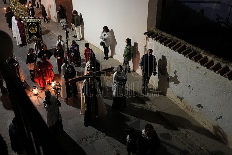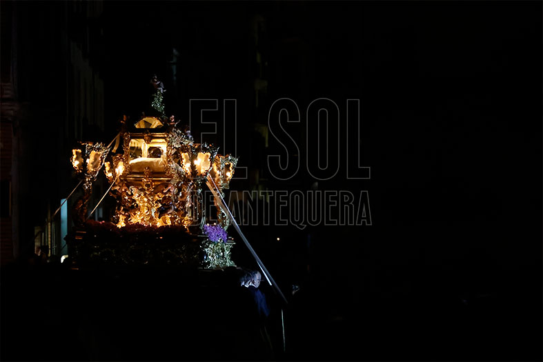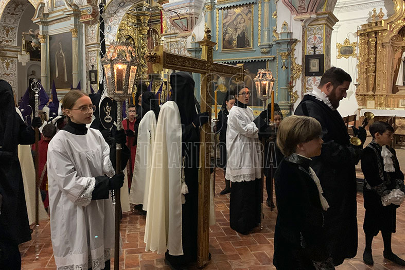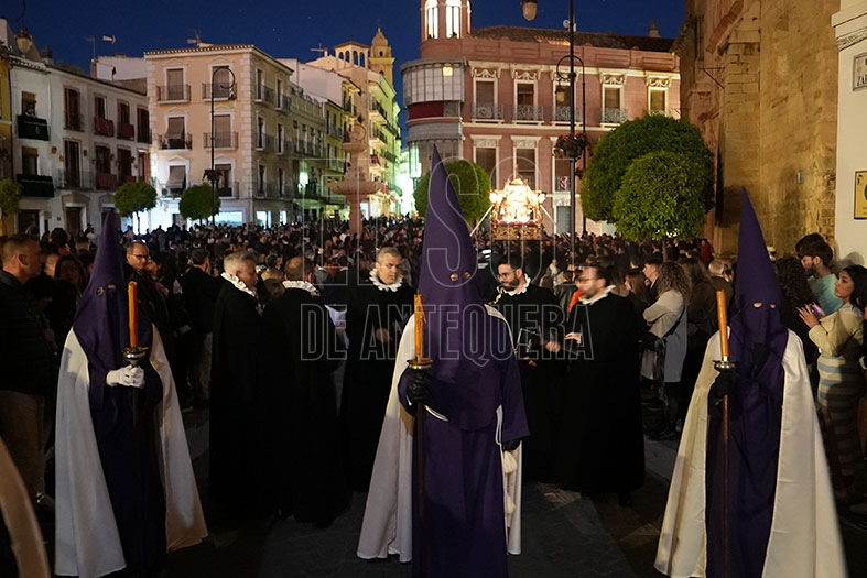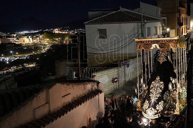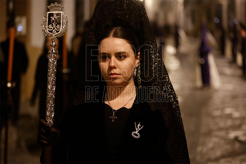 Así fue el discurrir de la Cofradía de la Soledad por las calles de Antequera en su participación final en el Viernes Santo de la Semana Santa de Antequera del año 2023.
