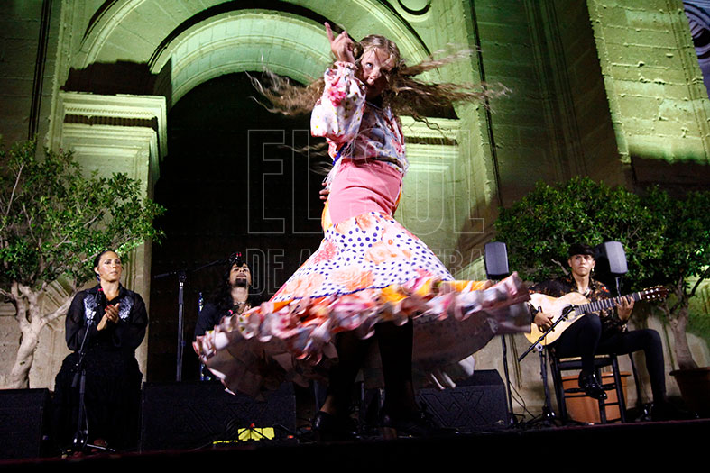 Era su segunda Noche Flamenca en Antequera, pero la primera en Santa María. Se encontró ante un público que se desmelenó escuchando apasionadamente al primero de la noche en actuar, Rancapino Chico al cante con Diego Amaya a la guitarra. Hay artistas a los que con cantar, les sale el arte a raudales y es su caso.