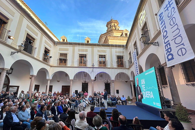 El patio de San Juan de Dios convocó a simpatizantes y miembros de la sociedad antequerana que estuvieron en el acto de presentación oficial de Barón para ser alcalde por cuarta vez.