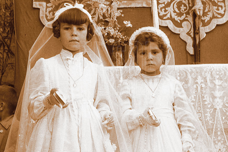 En 1959 también salía el Corpus Christi en Antequera por la mañana, pero en jueves. Era una de las fechas más destacadas para las familias que acompañaban a los pequeños vestidos de Primera Comunión y de angelitos. Las fotografías recogen una calle Infante don Fernando sin los grandes bloques de pisos, con la fachada consistorial reformándose o con la iglesia del Hospital de la Caridad aún en pie.