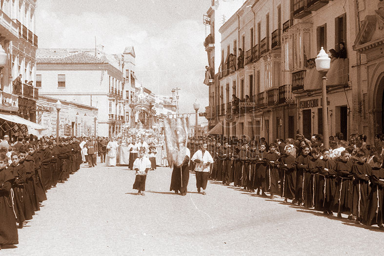 Cerraba “marcha la Banda Municipal de Música dirigida por el maestro don Juan Mohedo, y prestaba servicio de orden la Guardia Municipal bajo el mando de su jefe don Juan de Dios Negrillo”. La procesión desfiló solemnemente por las calles principales, cuyos balcomes aparecían adornados de banderas y colgaduras.