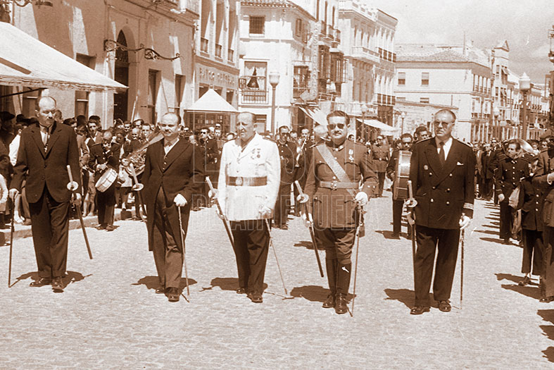 El Ayuntamiento, bajo mazas, iba presidido por Luis Moreno Pareja-Obregón, con el juez de Primera Instancia e Instrucción, Francisco Vives Trevilla y el director del Instiluto de Enseñanza Media, Ángel García Morales. También el capitán de la Guardia Civil, Pedro Lobato Manga y el comisario jefe de Policía, Antonio Claros López.