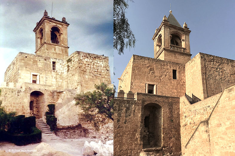Algo a lo que también colaboró la reconstrucción, en el año 2001, de la torre albarrana cilíndrica de San Juan y los lienzos almenados inmediatos, obra que realizó la delegación municipal de Patrimonio Histórico bajo la dirección del aparejador Manuel Cruz Sánchez. Con todo ello y, desde una cierta lejanía, se había recuperado la visión de conjunto de las defensas medievales antiquiríes, delimitadas en los extremos de este frente sur por la torre del Homenaje (Papabellotas) a la izquierda y la nazarí Torre-Puerta de Málaga (Ermita de la Virgen de Espera) a la derecha.