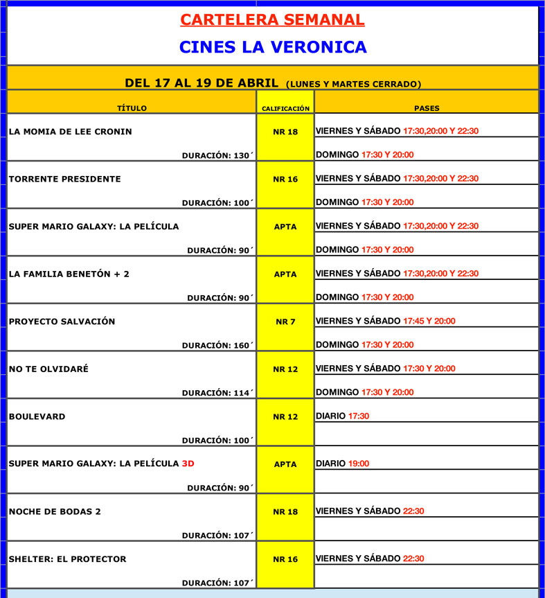 Venta de entradas en www.cineslaveronica.com o en taquilla.